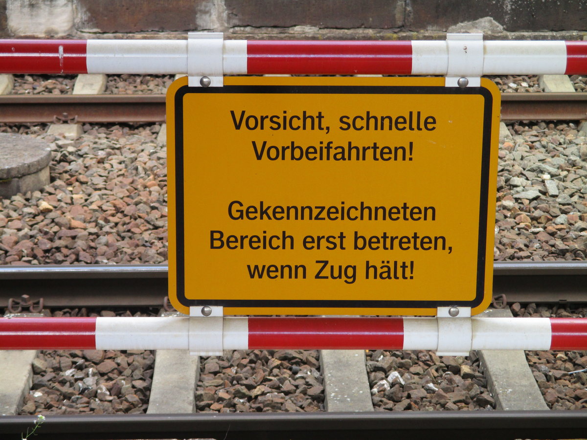 Da in Probstzella auch Züge durchfahren,mahnt dieses Schild daran.Gesehen am 28.Mai 2020.