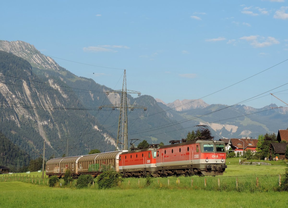 1144 096 + 1144 275 mit Güterzug bei Kaisersberg am 30.06.2020.