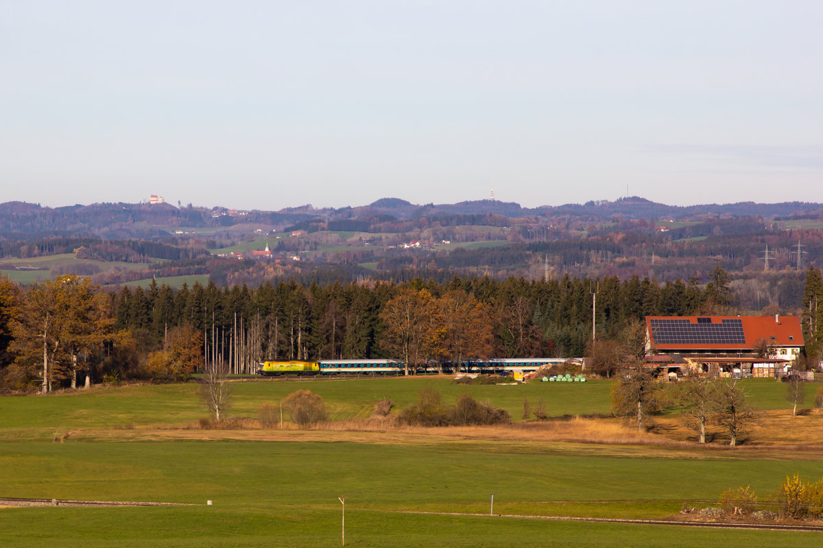 218 433 und 403 am EuroCity EC 191 nahe Opfenbach/Mellatz. 14.11.20