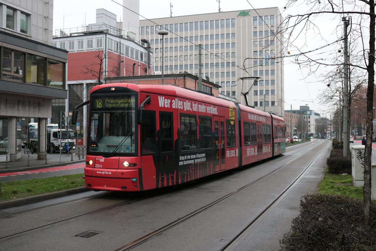 VGF Bombardier Flexity Classic S-Wagen 229 am 21.12.20 in Frankfurt am Main