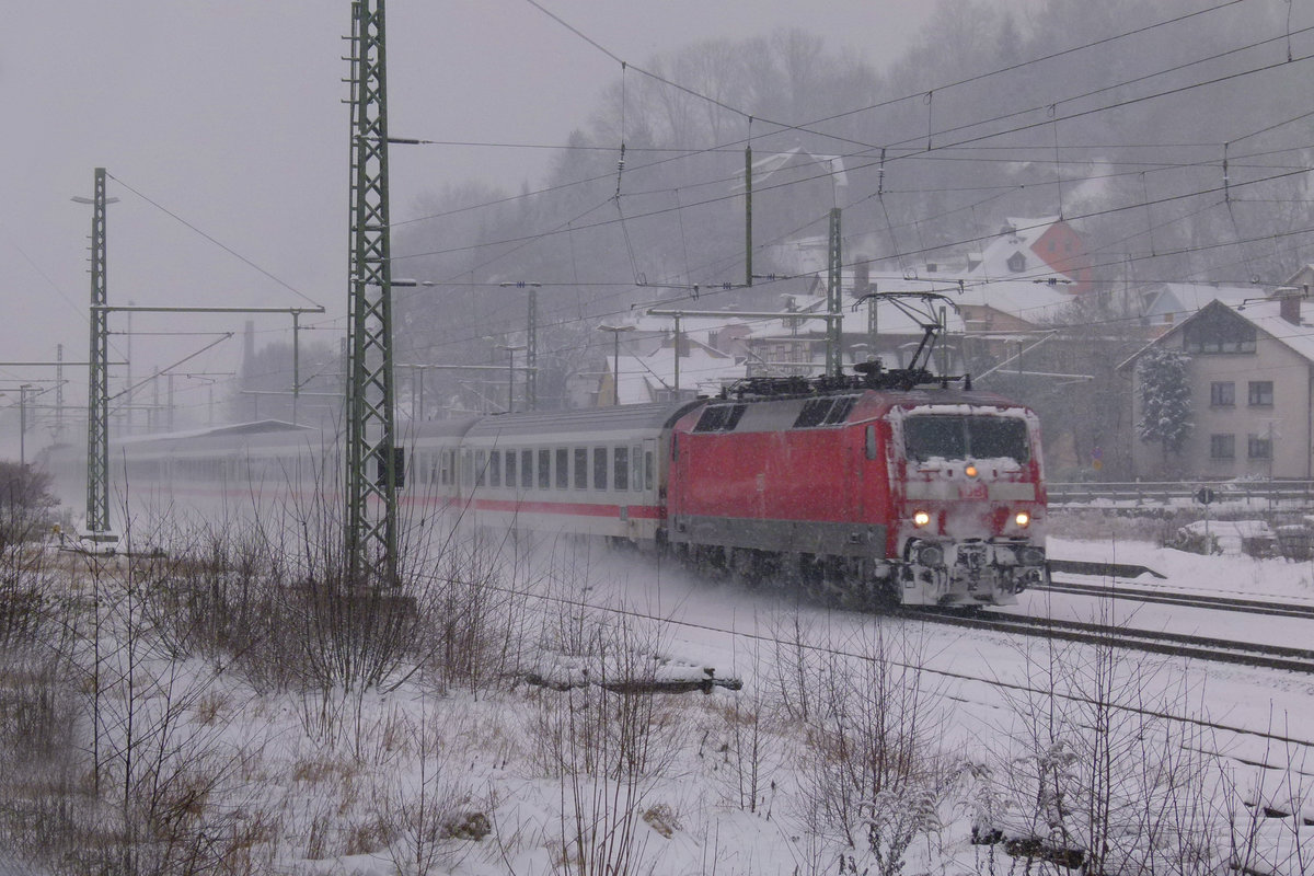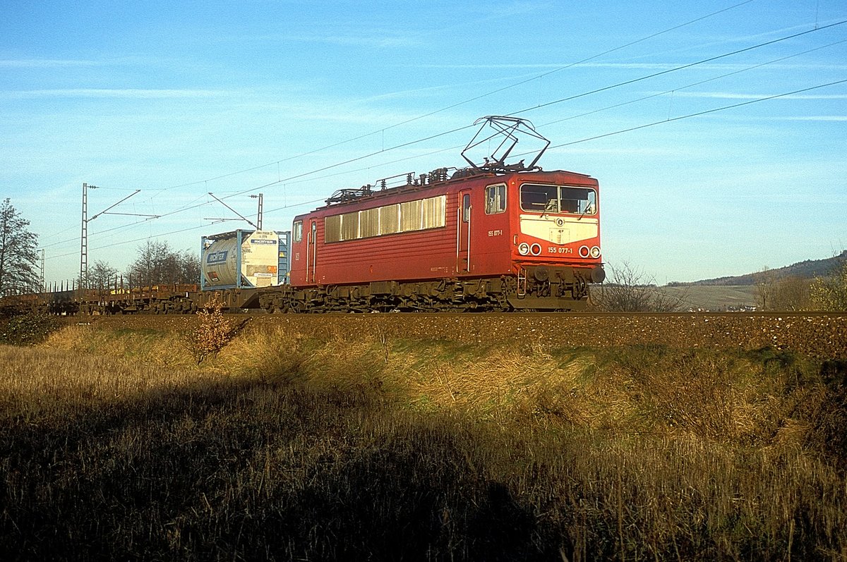 DB 152987-2 erreicht hier am 18.1.2020 um 10.27 Uhr mit einem Güterzug nach Osnabrück den Ortsrand von Hasbergen.