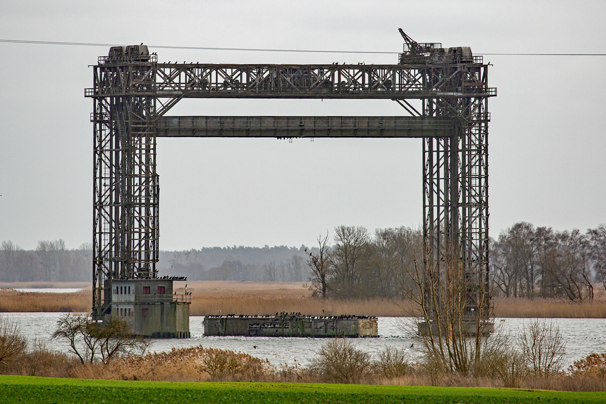 Das historische Denkmal der Eisenbahnhubbrücke Karnin verband das Festland mit der Insel Usedom bei Ducherow. - 02.02.2020