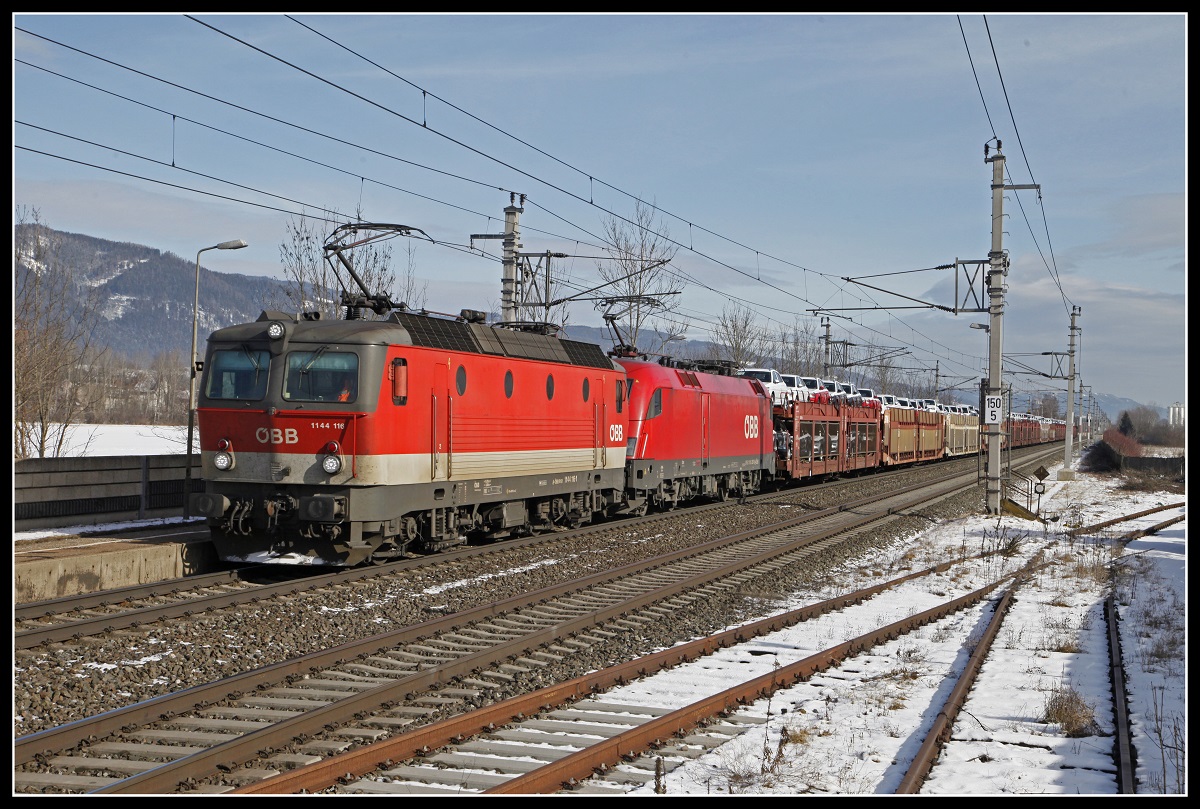 114 644 + 1144... mit Güterzug in Kapfenberg Fachhochschule am 6.02.2020.