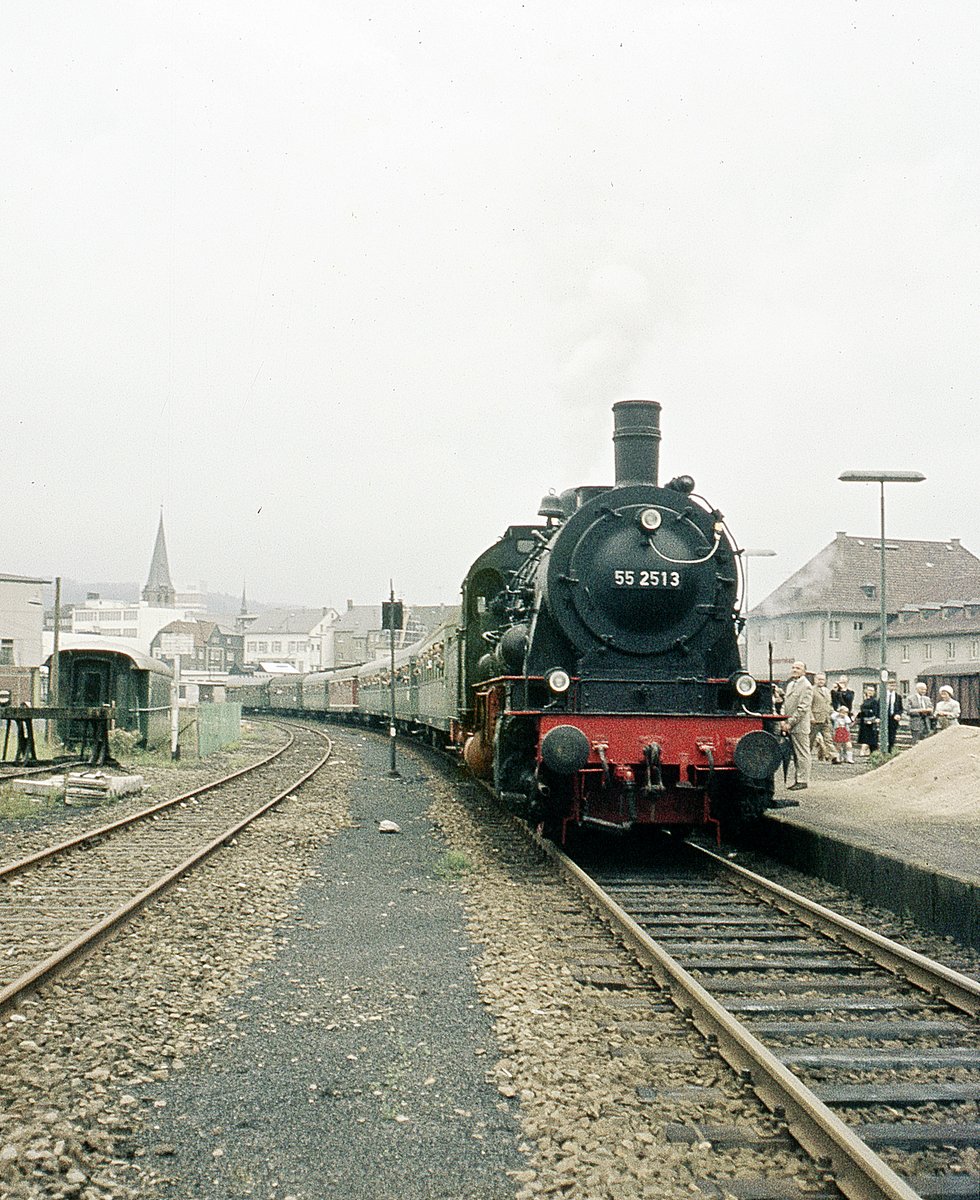 Vor dem abendlichen Schnellzug in Richtung Emden wartet 012 075-8 im Spätwinter 1975 im Bahnhof Rheine auf die Ausfahrt. Die Lok wurde 1991 auf Rostfeuerung zurückgebaut und gehört heute der Stoom Stichting Nederland.