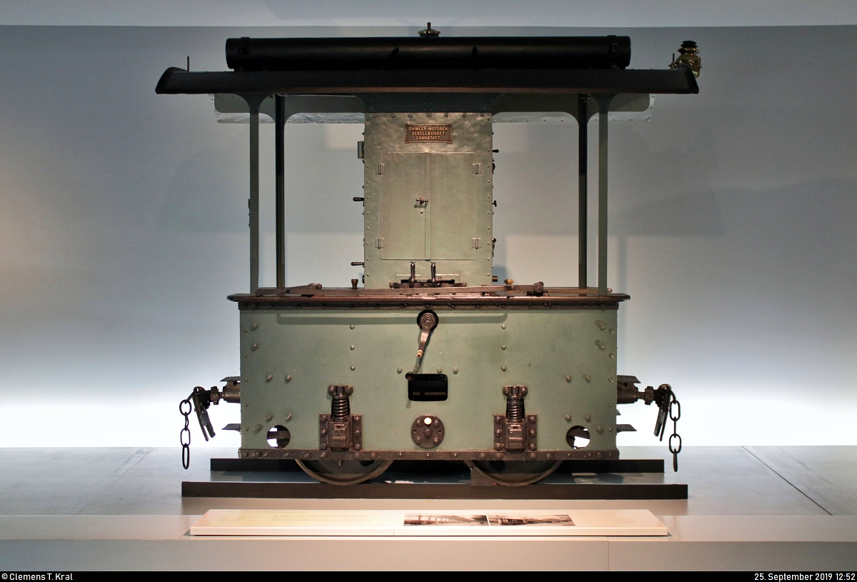 Die Daimler Motor-Draisine (1887), Teil der Daimler-Petroleumbahn, ist im Mercedes-Benz Museum in Stuttgart-Bad Cannstatt ausgestellt.
