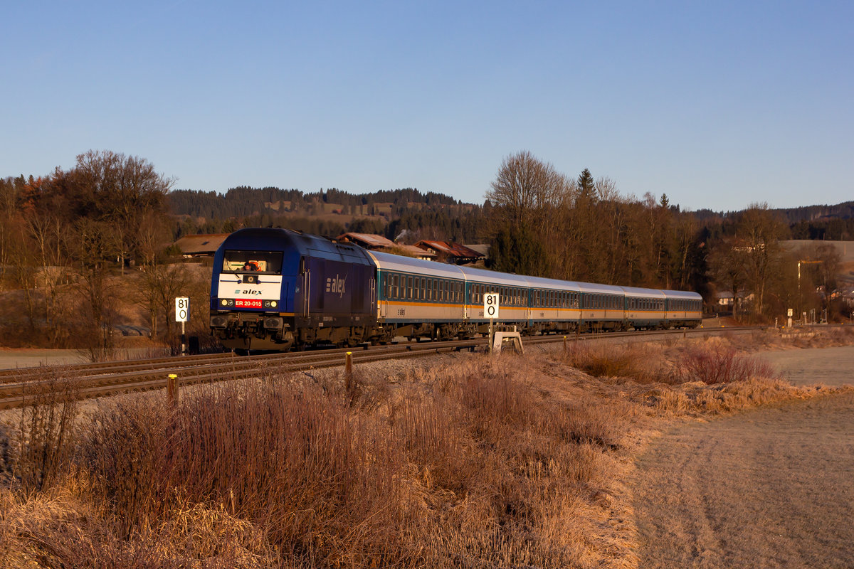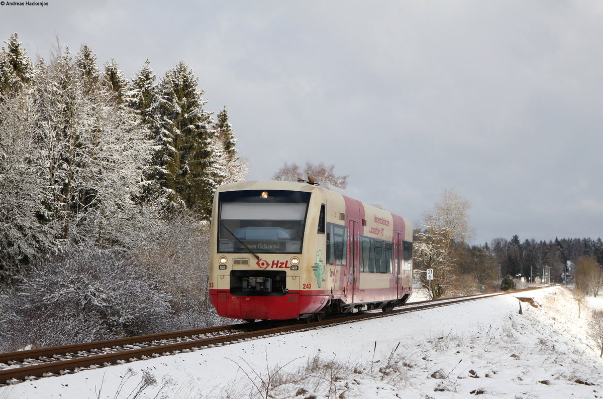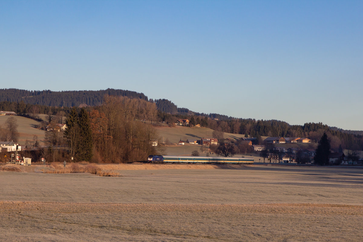 218 105-5 mit dem DbZ 93040 (Villingen(Schwarzw)-Rottweil) bei Villingen 6.2.20. Die Stelle ist von hintenher legal erreichbar