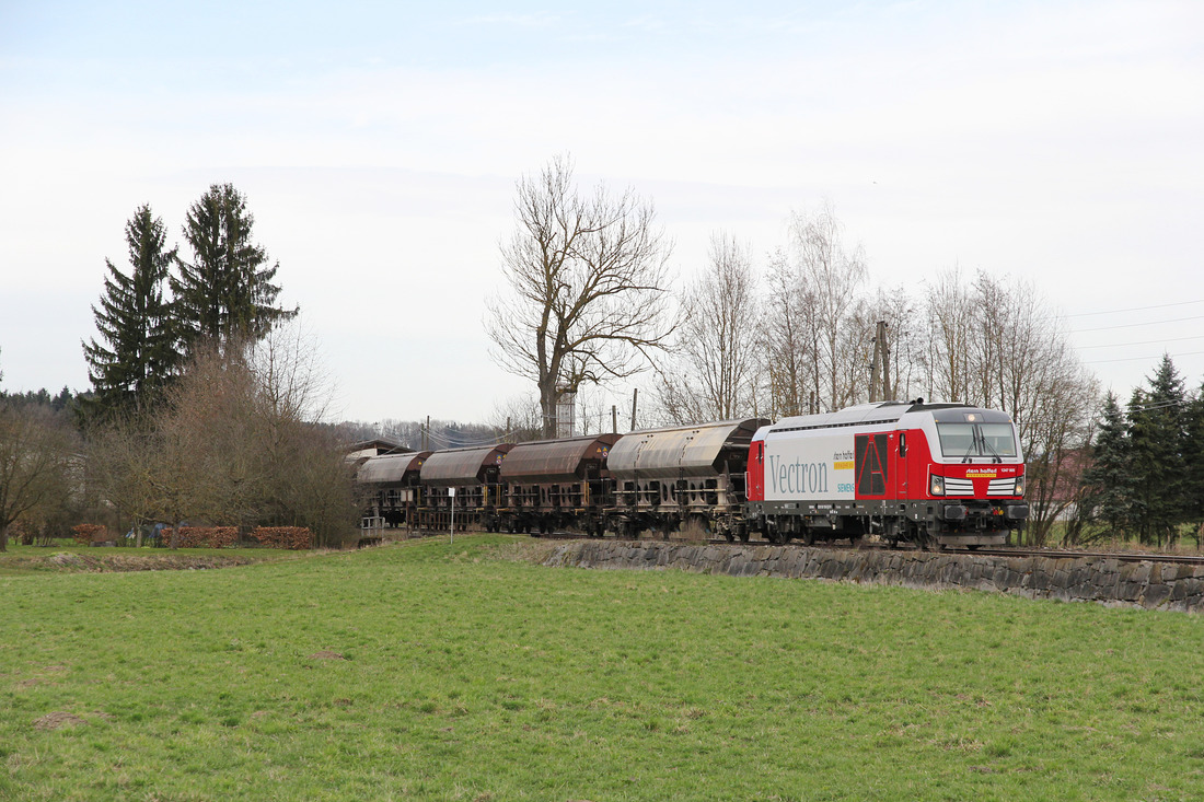 Eine wirklich Überraschung war diese Überführungsfahrt am 04.02.19 bei der Durchfahrt Bf. Flughafen Berlin Schönefeld, diese glaube ich recht neue in Diensten von railadventure befindliche Vossloh Lok (NVR: 92 87 4185 011-1 F-RADVE) mit der Überführung eines ICE 4 Mittelwagens Richtung?.