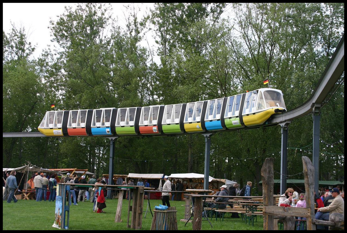 Am 17.5.2007 gab es im Magdeburger Elbauenpark noch die Einschienenbahn aus der Zeit der Bundesgartenschau. Kurze Zeit nach meiner Aufnahme las ich von ihrer Demontage!