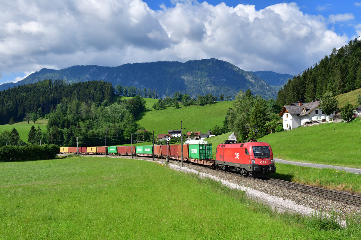 1116 272 + 1144 xxx mit einem Containerzug am 04.07.2020 bei Spital am Pyhrn.