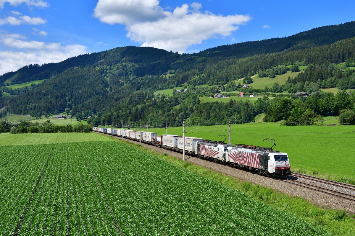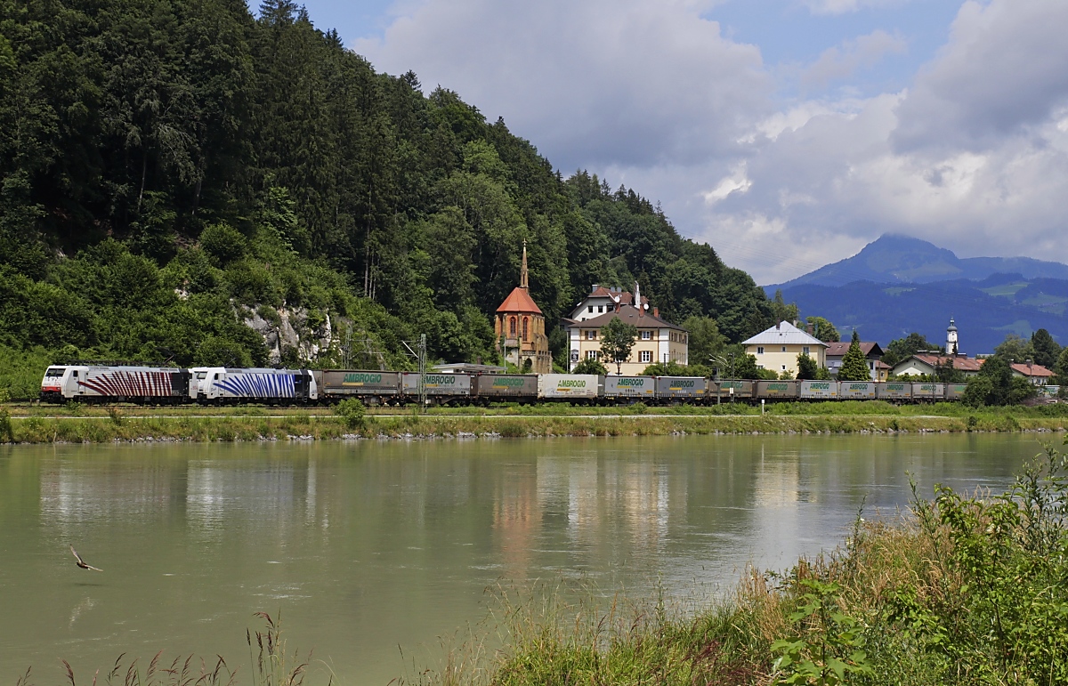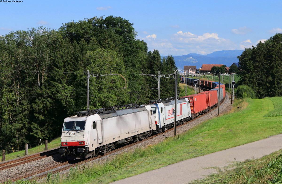 186 909-4 und 186 903-1 mit dem 43004 ( Pomezia-S.Palomba-Rheinhausen) bei Mühlau 23.6.20