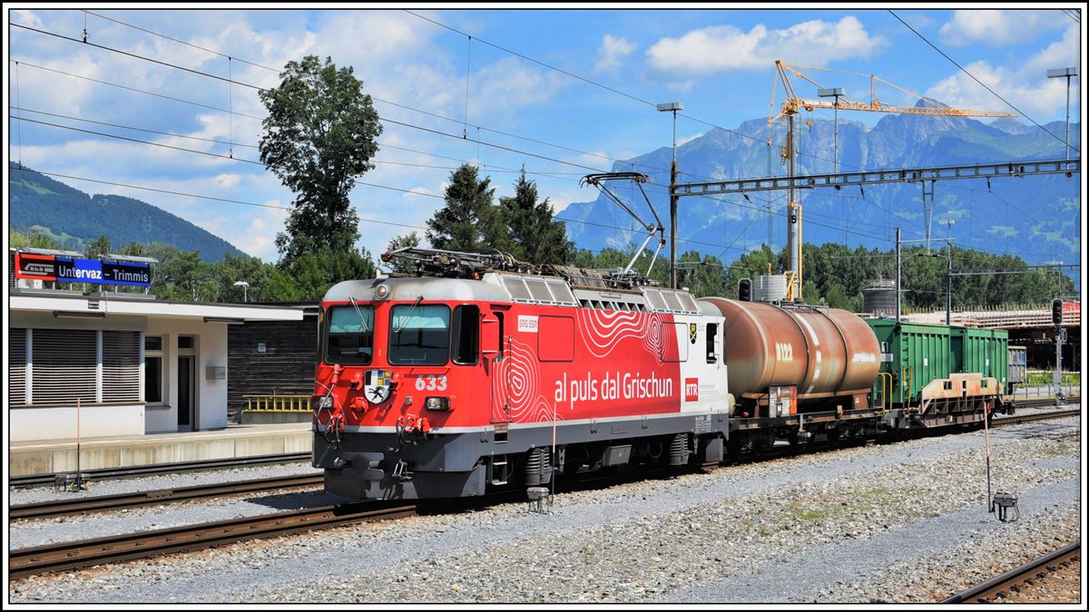 5737 mit Ge 4/4 II 633 "Zuoz" aus Landquart trifft in Untervaz-Trimmis ein. (14.07.2020)