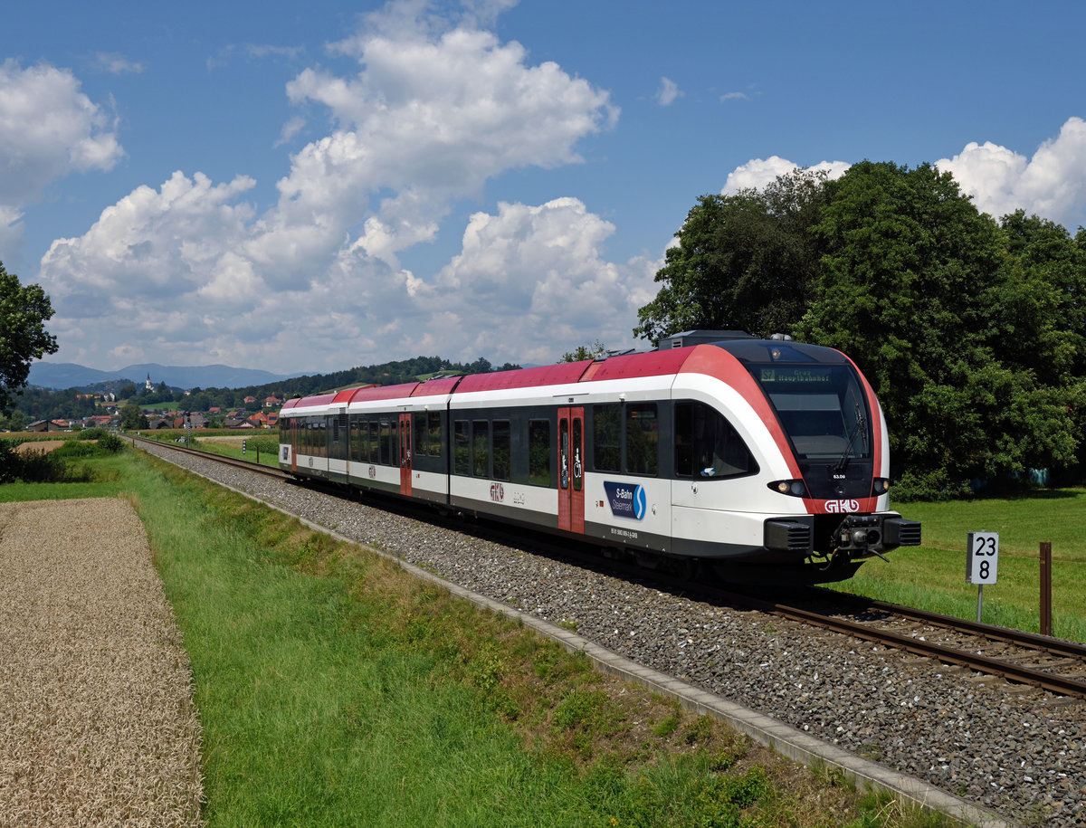 Am 20. Juli 2020 war VT 63.09 als S7 von Köflach nach Graz Hbf. und wurde von mir bei Köppling fotografiert.