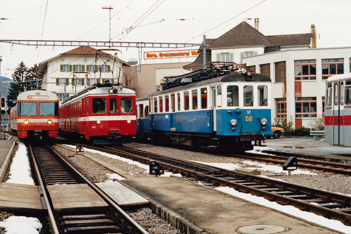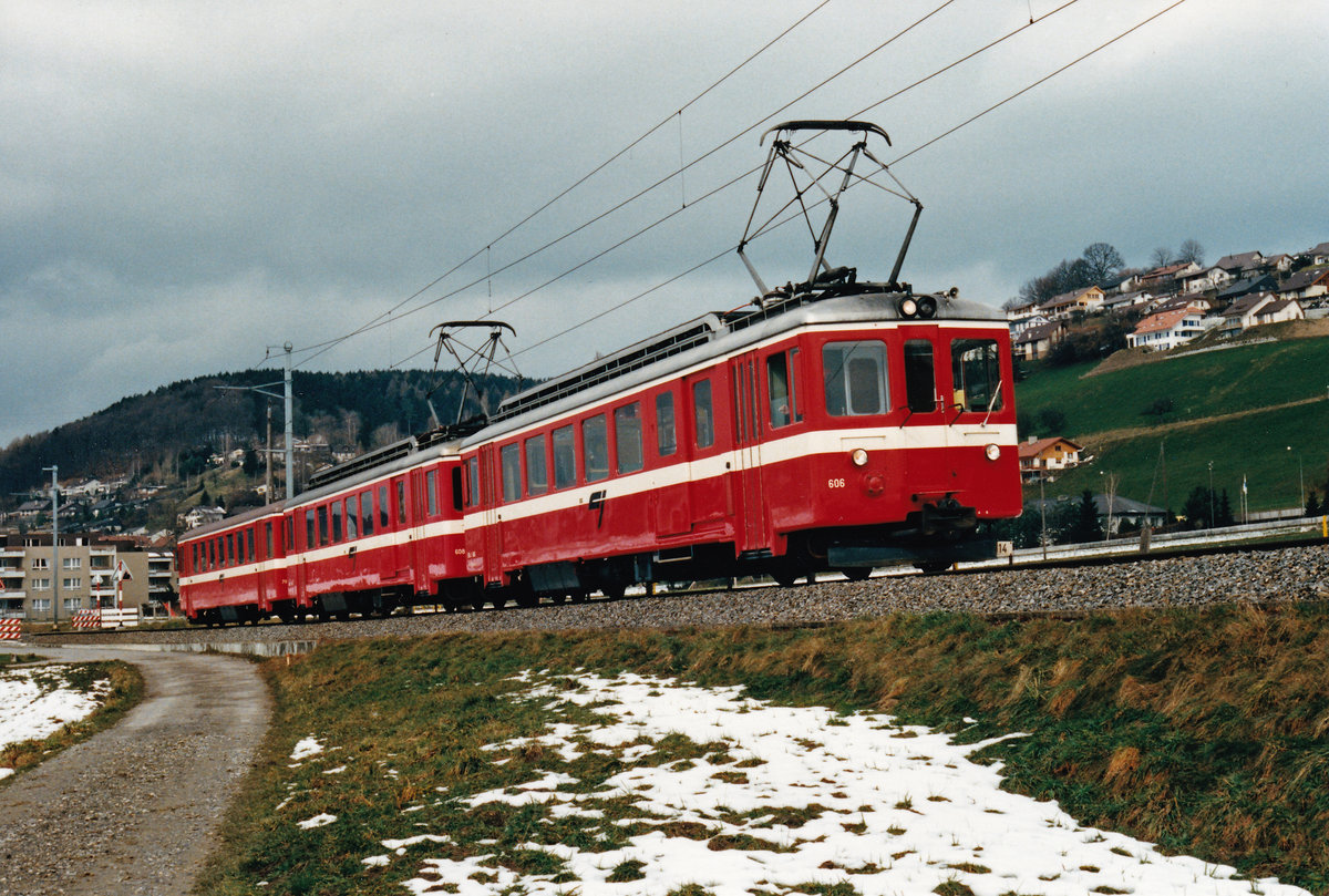 In den 80er-Jahren musste der RBS infolge Rollmaterialmangel während den Wintermonaten von der CJ ein dreiteiliger Pendelzug bestehend aus BDe 4/4 (601-608) + BDe 4/4 (601-608) + Bt