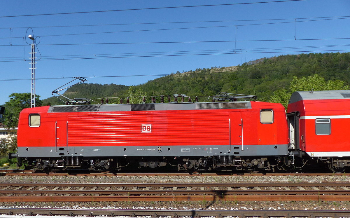 DB 143 012 mit dem RE 4880 "Saale-Express" nach Halle (S) Hbf, am 22.07.2020 in der Abstellung in Jena-Göschwitz.