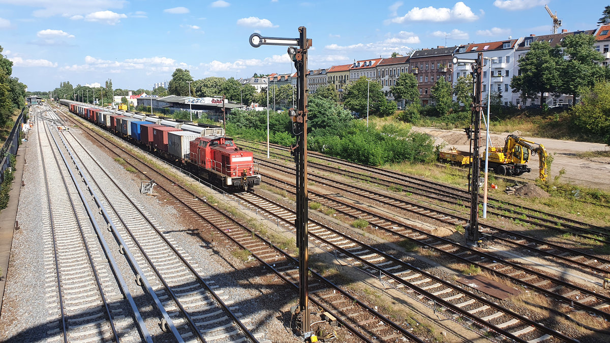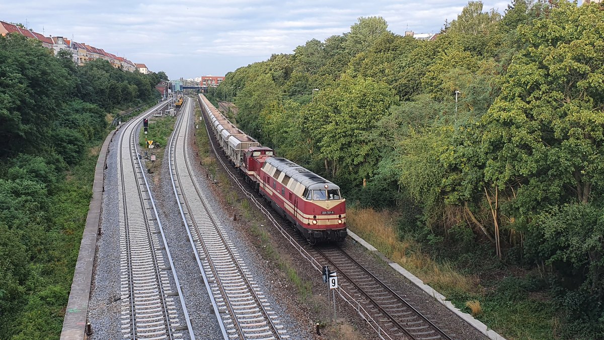 ... der hier in Berlin nebst dem "Ostbahnknicker" so bekannt ist, fährt pünktlich über den Südl. Berliner Innenring entlang der wegen Gleiserneuerungsarbeiten für die S-Bahn in diesem Bereich gesperrten Ring-Gleise. Gezogen hat ihn 298 336.
