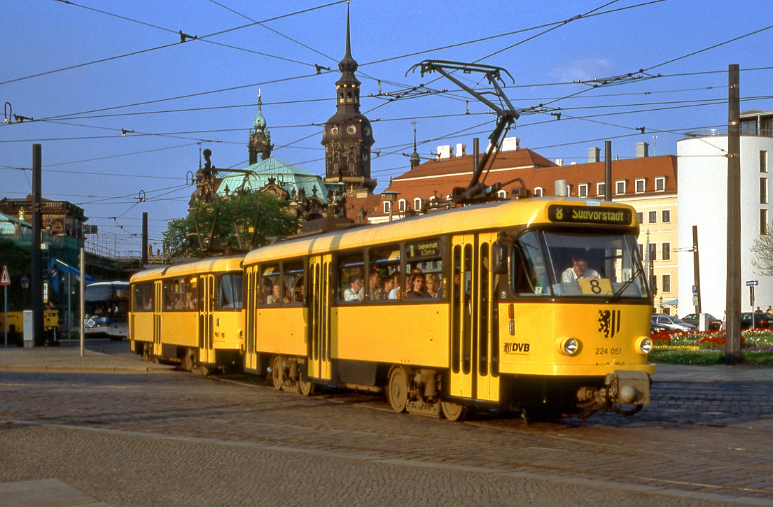 Der 24. sanierte und modernisierte B-Wagen 2408 (ex 2108) befindet sich im Liniendienst. Hier zusammen mit 2302 als Linie 5 auf der Kreuzung Margaretastraße/Rochusstraße am 23.07.2020.