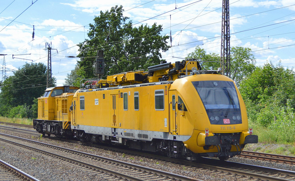 DB Netz AG, Berlin mit "203 307-4" [NVR-Nummer: 92 80 1203 307-4 D-DB] und "711 115-6" am Haken am 11.07.20 Bf. Saarmund.