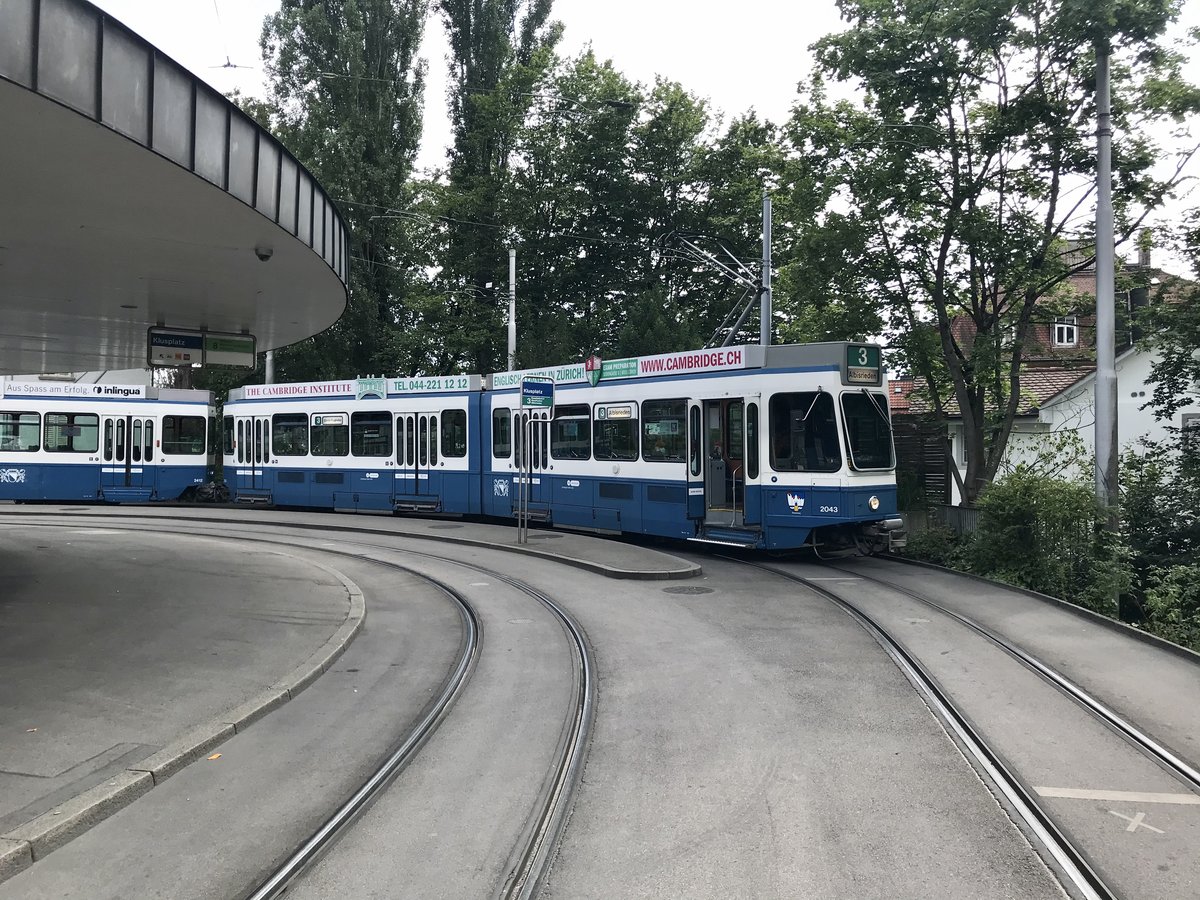 Linie 3 2043 „Rennweg“ am Klusplatz. Datum: 16. 5. 2020