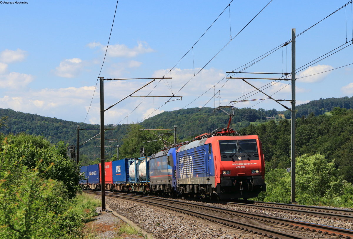 Re 474 005 und 193 526-1 mit dem 40043 (Zeebrugge Vorming-Milano SM) bei Zeihen 23.6.20