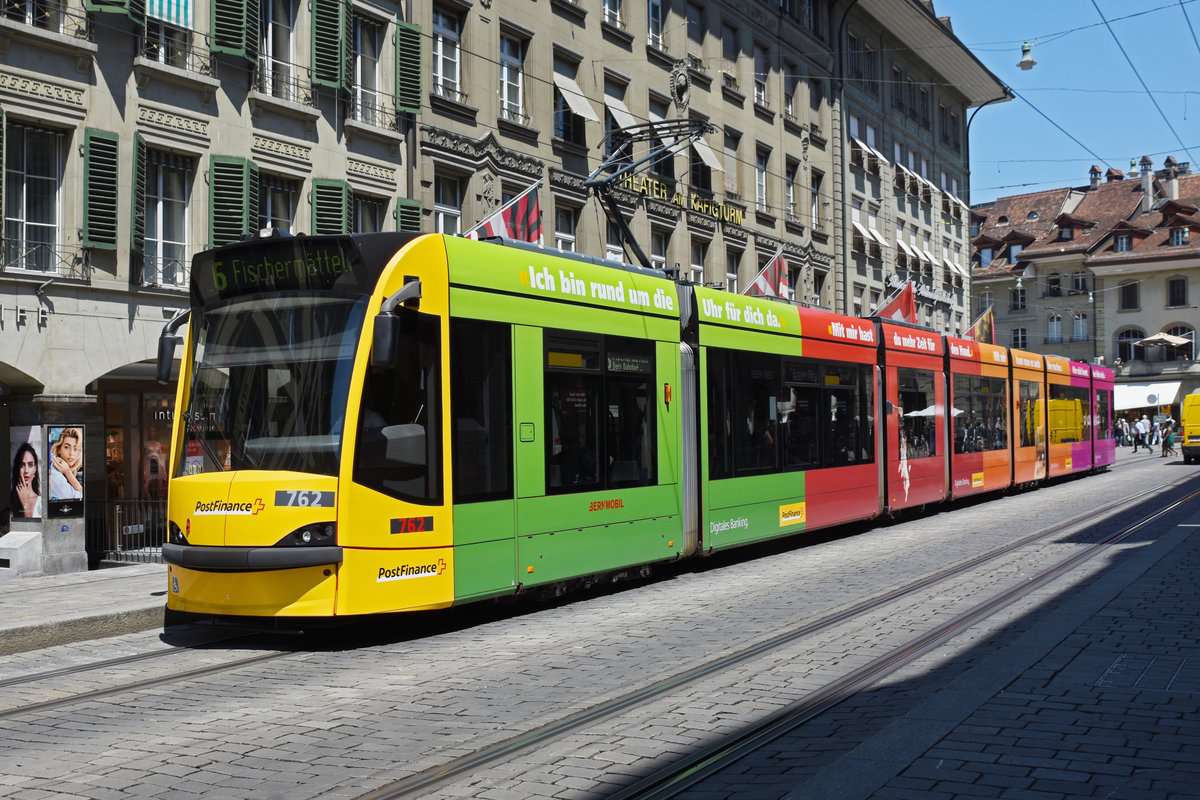 Be 6/8 Combino 762 mit der Werbung für Post Finance, auf der Linie 6, bedient die Haltestelle Bärenplatz. Die Aufnahme stammt vom 024.06.2020.