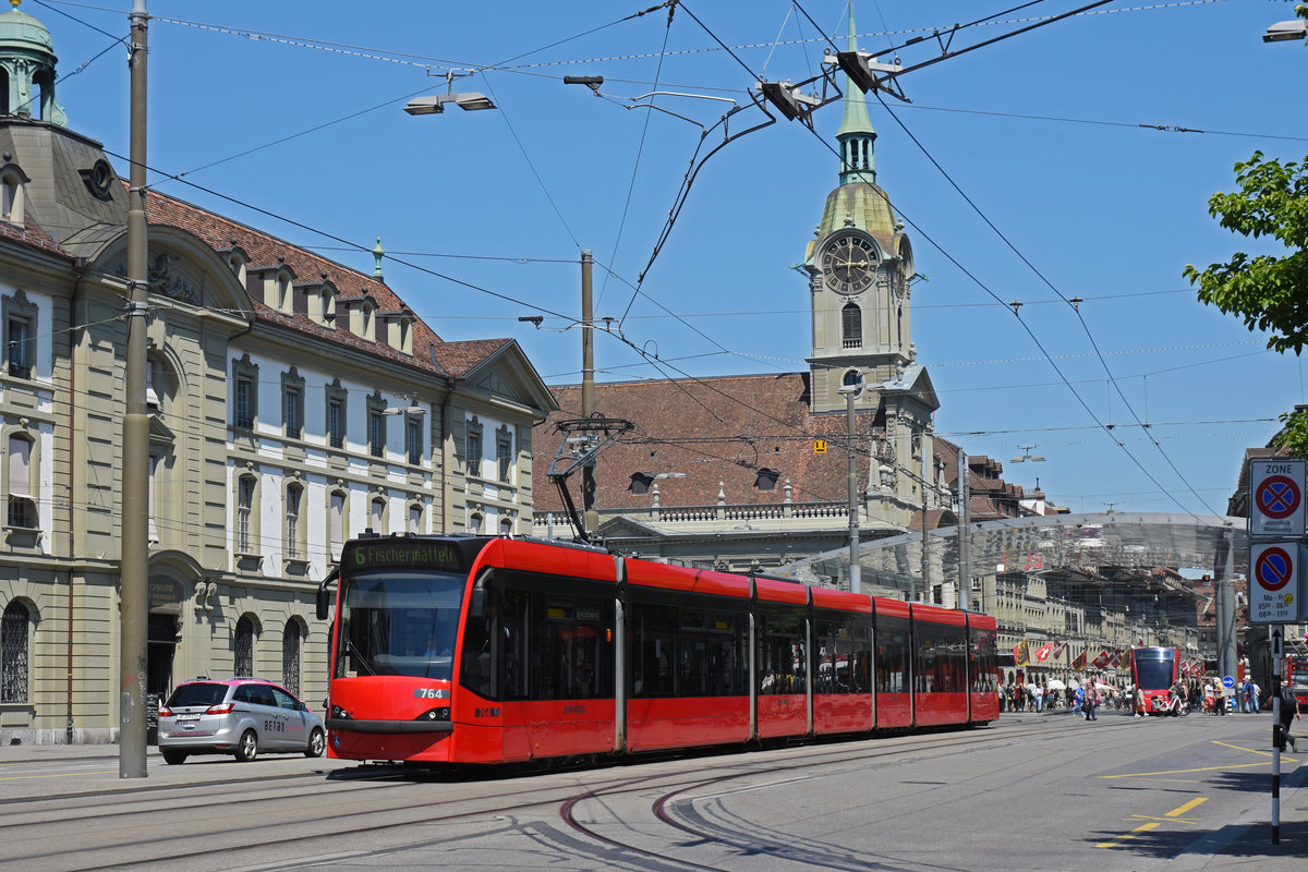 Be 6/8 Combino 764, auf der Linie 6, fährt zur Haltestelle Hischengraben. Die Aufnahme stammt vom 24.06.2020.