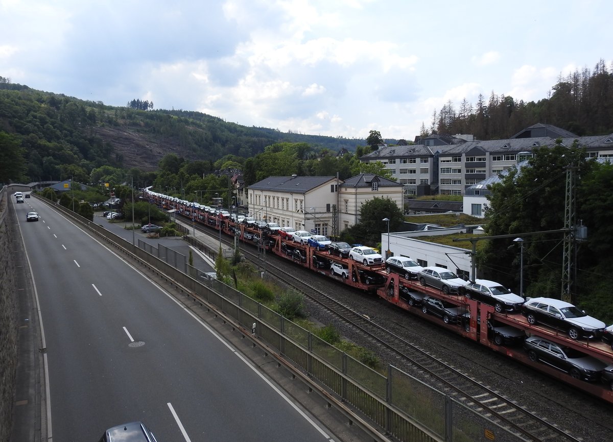 Fast täglich rollen 1/2 überlange Autotransportzüge mit Neuwagen aus Ingolstadt