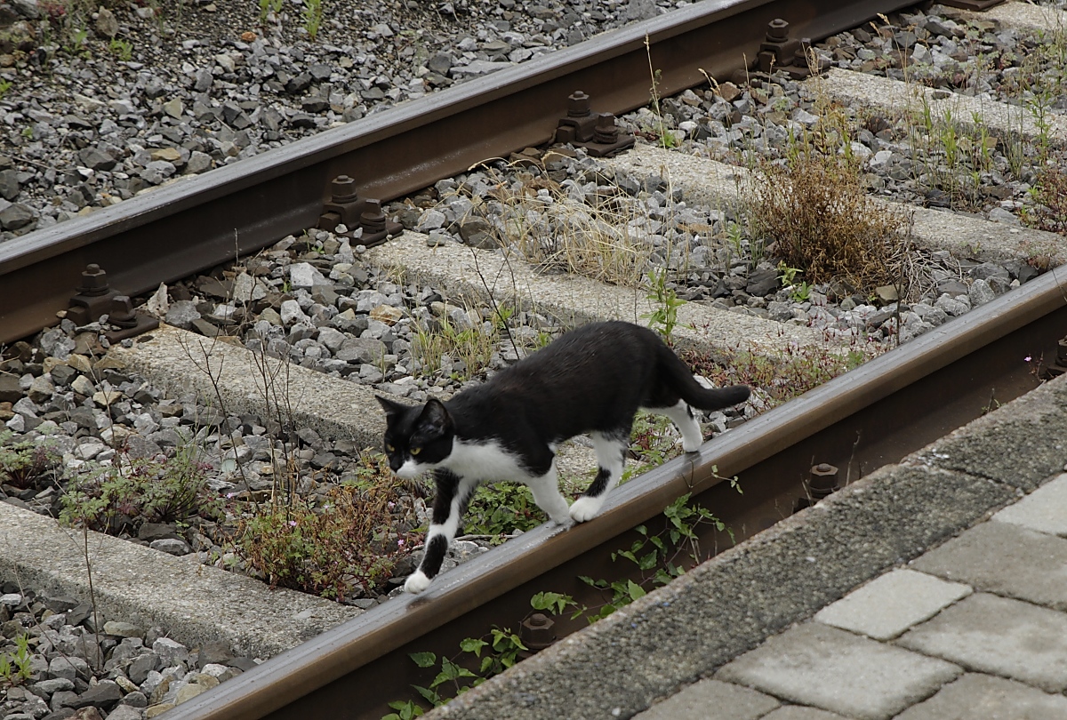 Hochkonzentriert geht dieser Streckenläufer seiner Arbeit nach (Bahnhof Schliersee 16.07.2020)