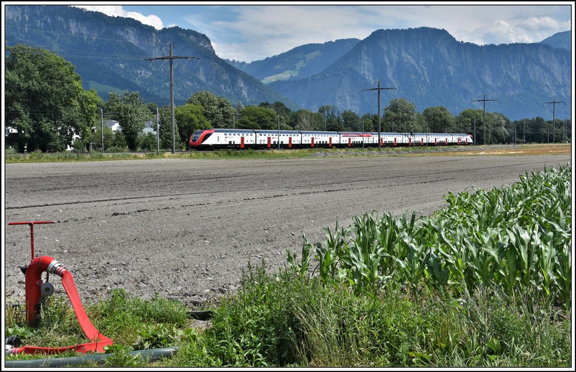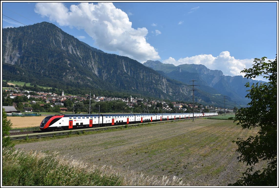 Immerhin, als Nachschuss klappte es dann doch: Der SBB RABe 503 011-3 (UIC 93 85 1 503 011-3) als EC 39 auf dem Weg von Genève nach Milano Centrale bei St-Saphorin.