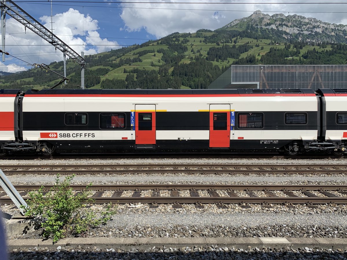 SBB Giruno 1. Klasse Wagen H A5 501 93 85 4 501 203-2 am 25.7.20 in Frutigen.