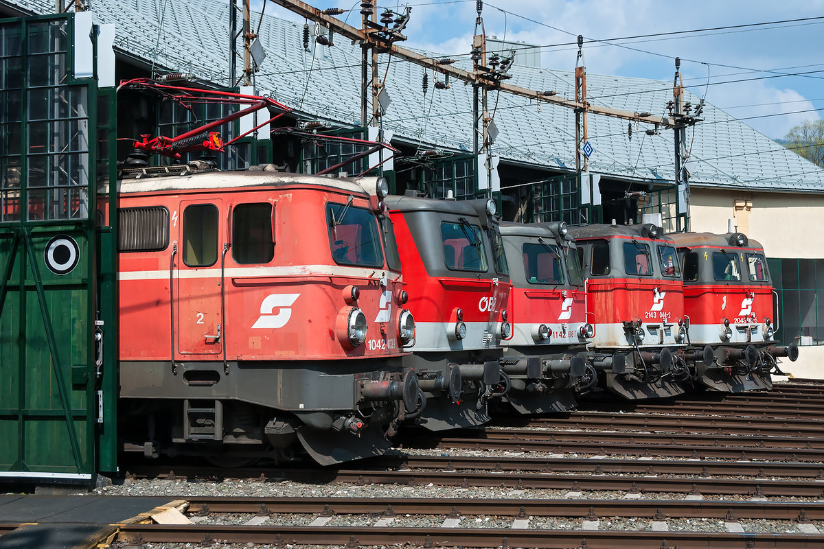 1042 033, 1144 031, 1142 608, 2143 044, 2143 062, vor einigen Jahren, am 17.04.2010 in der Traktion Selzthal.
