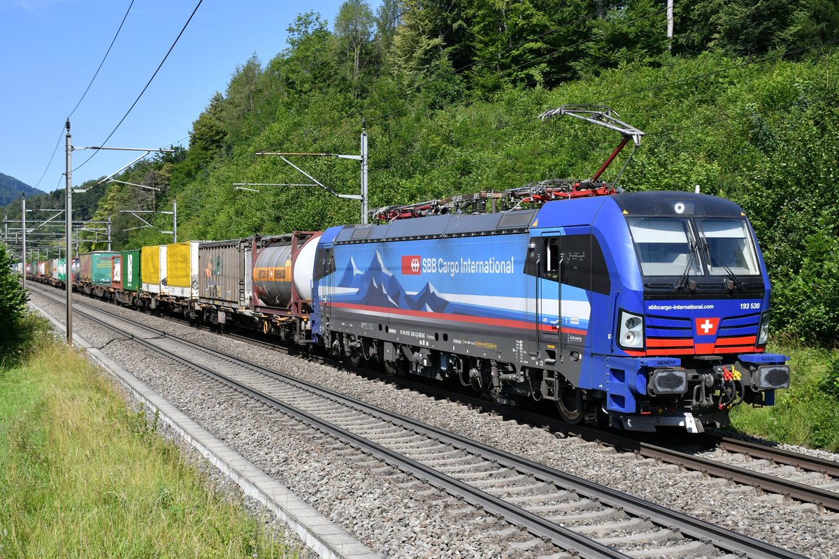 193 530 "Po" unterwegs in den Süden bei Villnachern AG (CH) am 04.07.2020. Gruss zurück in die Lok und allzeit gute Fahrt 😀.
