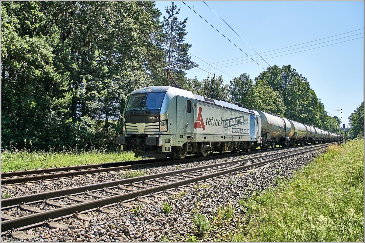 Vectron 193 583-2 ohne Logo des EVU (bisher Alpha Trains jetzt Captrain Deutschland (ITL)) mit einem Zug Kesselwagen bei Durchfahrt durch Brandenburg (Havel) in Richtung Potsdam; 25.06.2020