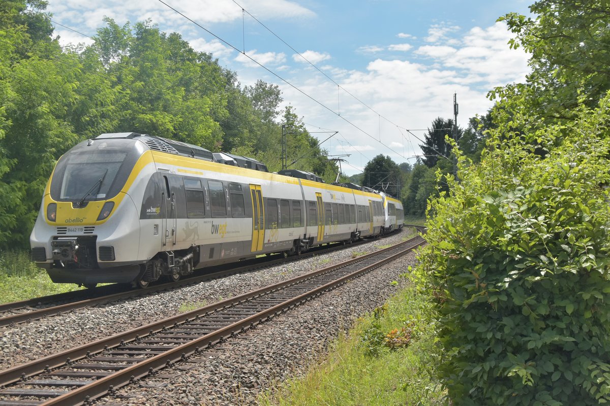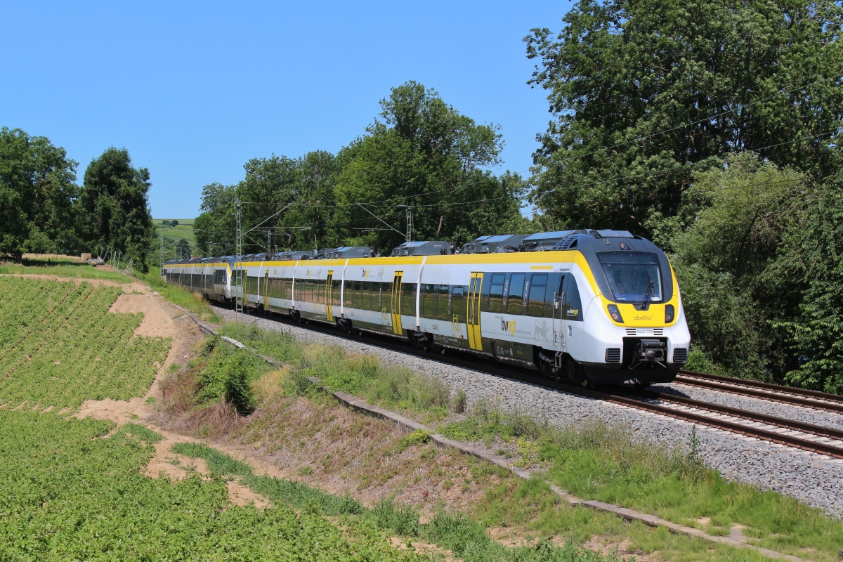 Am 24.06.2020 ist ein doppelter 5-teiliger Hamster von Abellio bei Lauffen am Neckar in Richtung Stuttgart unterwegs.