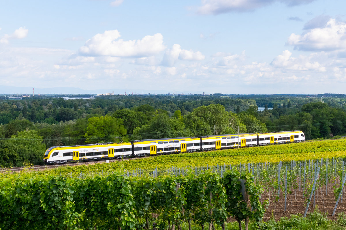 Desiro HC 1462 fährt oberhalb der Rheinebene in den Rebbergen zwischen Rheinweiler und Bad Bellingen Basel entgegen. 03.07.2020