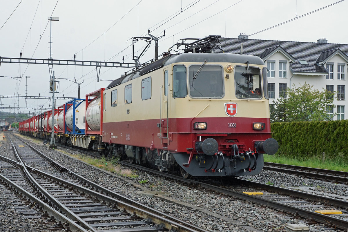 Re 420 254-5 durchfährt den Bahnhof Pratteln. Die Aufnahme stammt vom 18.05.2020.