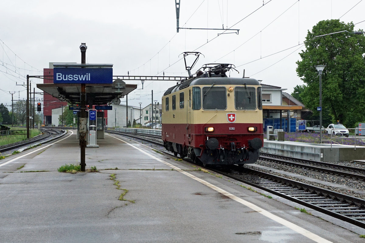 Be 6/10 Tango 185, auf der Linie 11, fährt bei der Haltestelle Bahnhof SBB ein. Die Aufnahme stammt vom 24.05.2020.