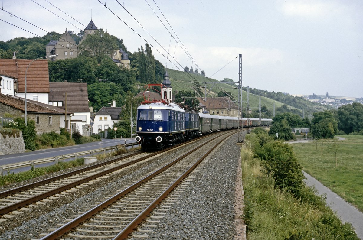 152 005-5, na klickt es da beim Einen oder Anderen? Für alle anderen, so sieht die CLAAS Werbelok heute aus, sie ist hier mit einem Audi-Zug am Mittag des 30.6.2020 in Neckargerach gen Heidelberg unterwegs.
