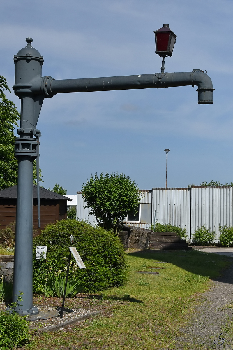Ein Wasserkran war Mitte Juni 2020 etwas abseits vom Lokschuppen Pomerania in Pasewalk zu sehen.