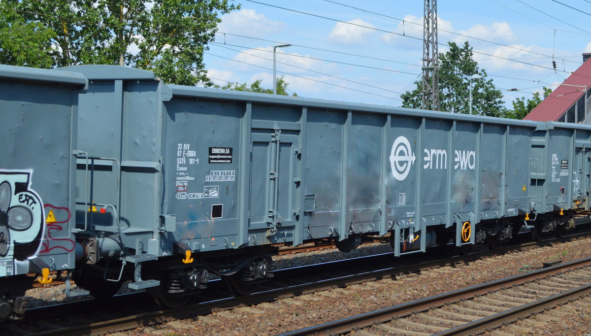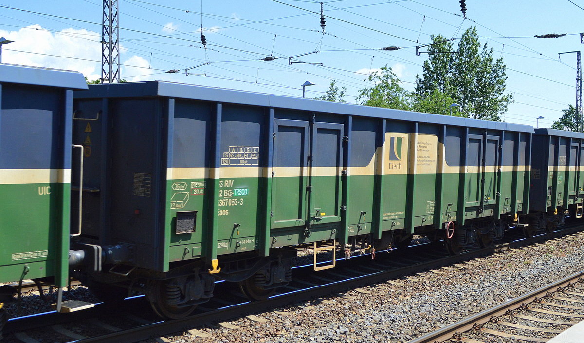 Offener Drehgestellwagen vom polnischen Einsteller CIECH Cargo Sp.z o.o mit bulgarischer Registrierung mit der Nr. 33 RIV 52 BG-TRSOD 5367 053-3 Eaos in einem Ganzzug am 15.06.20 Bf. Saarmund.
