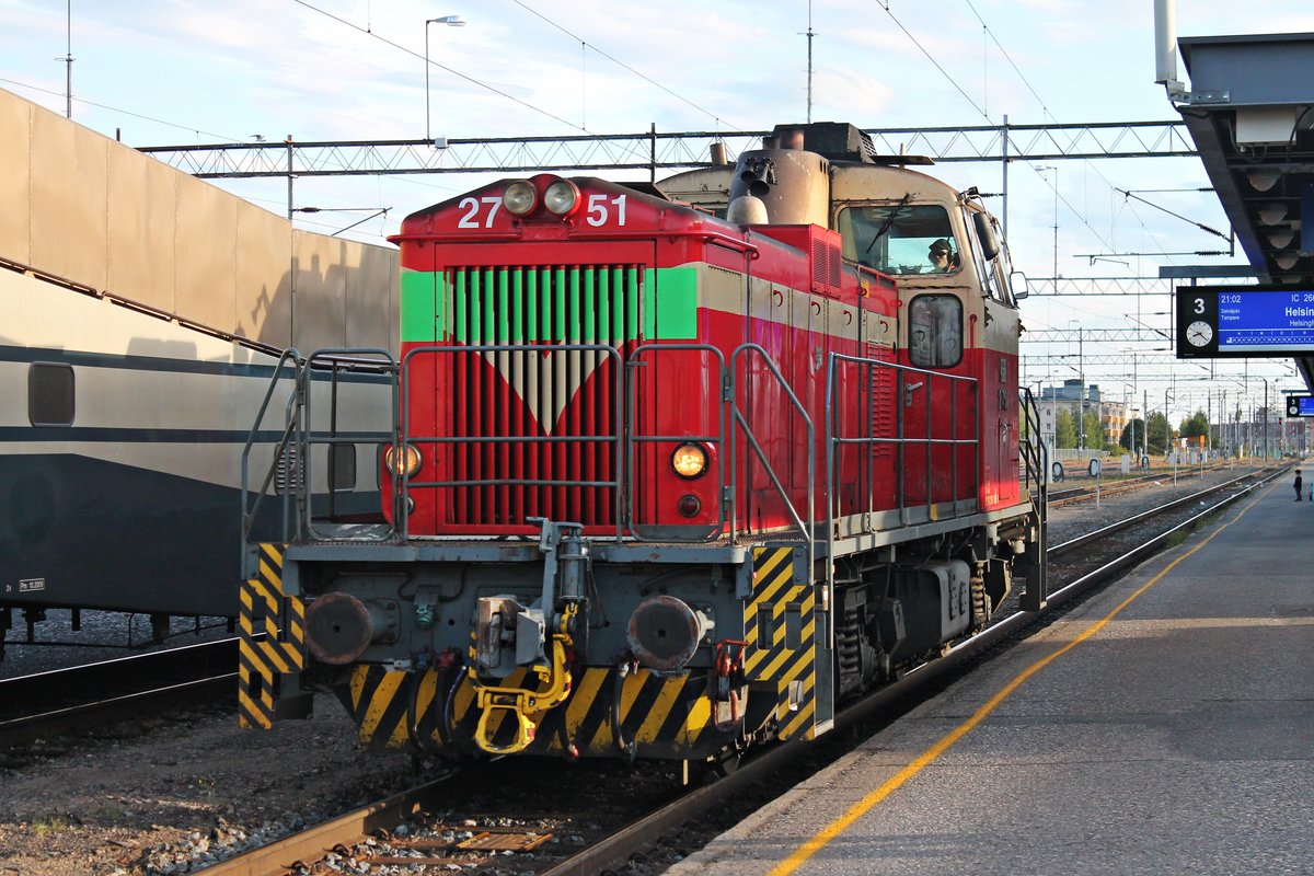 Portrait von Dv12 2751, als diese am Abend des 09.07.2019 mit Rangieraufgaben im Bahnhof von Oulu zutun hatte.