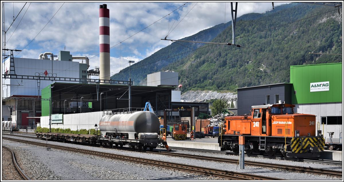 5737 mit Ge 4/4 I 610 "Viamala" fährt in Untervaz-Trimmis ein und wird weitere Last nach Ilanz übernehmen. (18.06.2020)