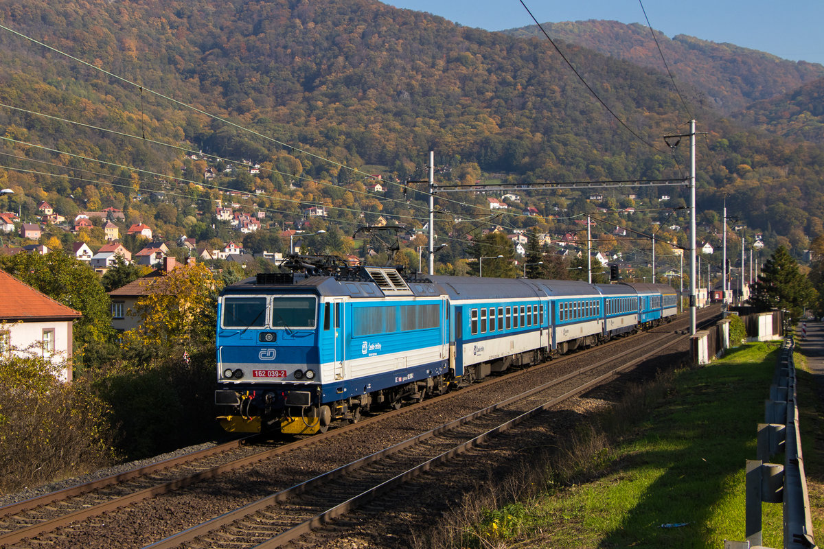 14. Oktober 2019 in Vanov: 162 039-2 zieht den Schnellzug nach Usti nad Labem.