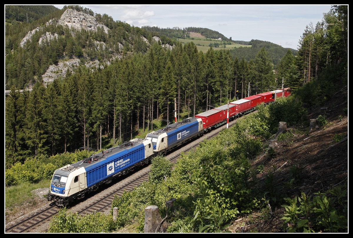 187 322 + 187 321 mit Güterzug bei Breitenstein am 12.06.2020.