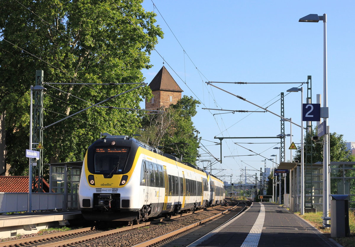 9442 314 "Die Wartburg" fährt am 06.07.2020 als RB 25 (93262) von Naumburg (Saale) Hbf nach Saalfeld (Saale) beim Halt in Dornburg (Saale).