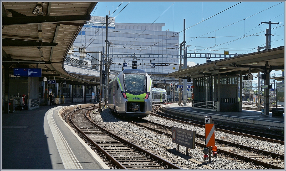 Als ich sah, was da in Lausanne auf Gleis 2 stand war es schon (fast) zu spät, und so konnte ich den neuen BLS Flirt 4 RABe 528 bei seiner Abfahrt nur noch wenig vorteilhaft fotografieren.