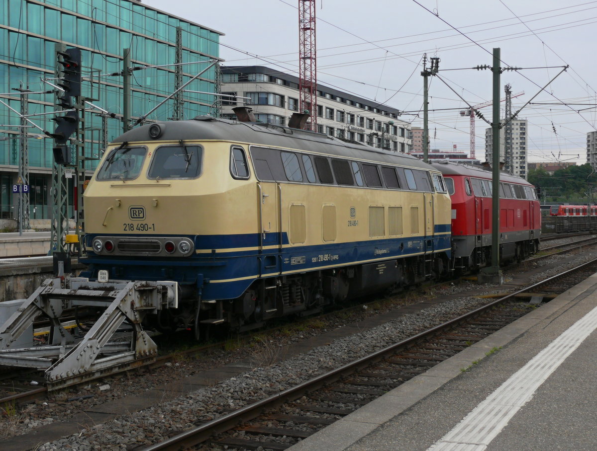 Am 5.5.20 standen 218 838 der DB Fernverkehr und 218 490 der RP im Stuttgarter Hauptbahnhof