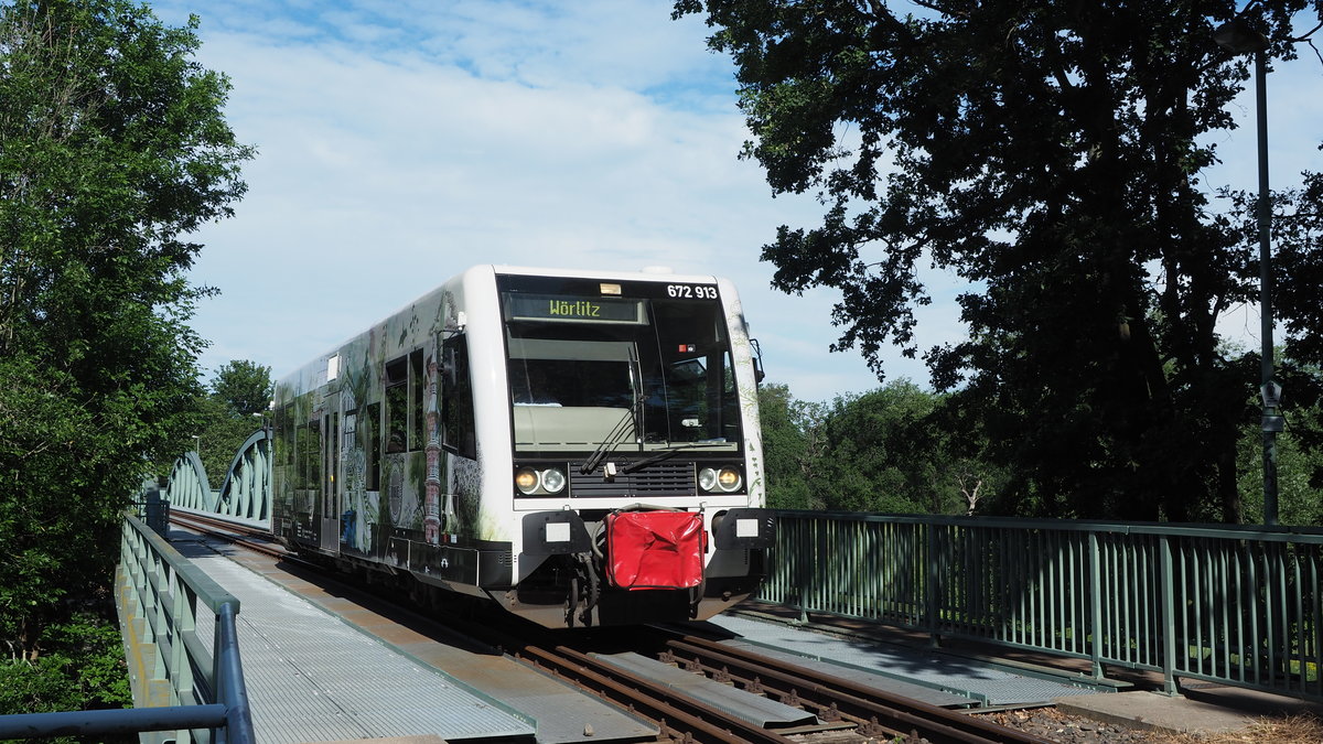 720 302 von DB Netz war am 28.06.20 auf Messfahrt. Hier passiert er auf dem Weg Richtung Wittenberg soeben Burgkemnitz.