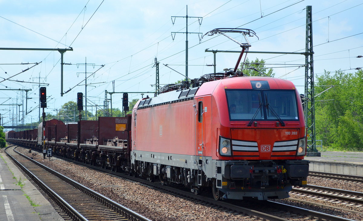 DB Cargo AG [D] mit "193 393" [NVR-Nummer: 91 80 6193 393-6 D-DB] mit einem Coilzug (leer) Richtung Ziltendorf EKO am 18.06.20 Bf. Flughafen Berlin Schönefeld.