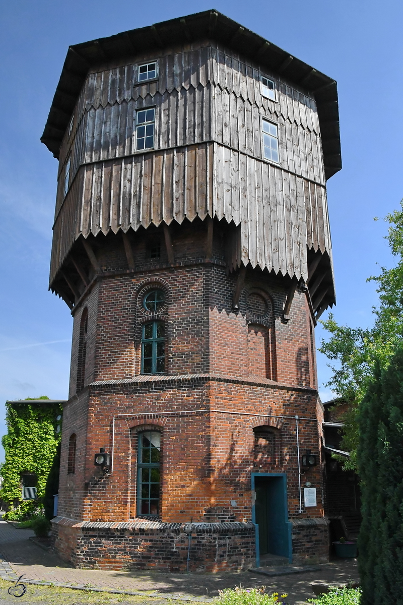 Der wunderschön erhaltene Wasserturm des Lokschuppen Pomerania, so gesehen Mitte Juni 2020 in Pasewalk.