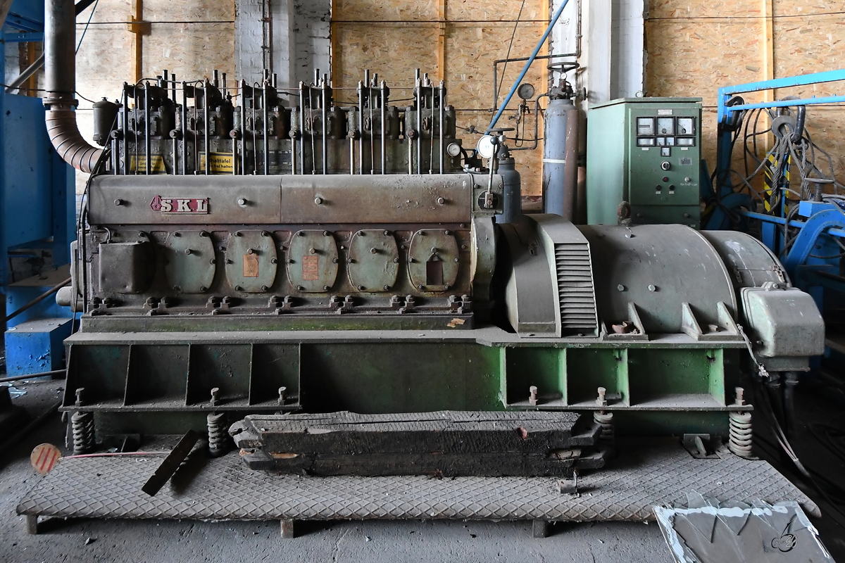 Ein Diesel-Generatorsatz mit Dieselmotor Bauart 6 NVD 24 von SKL, Baujahr 1961 war Mitte Juni 2020 im Lokschuppen Pomerania Pasewalk zu sehen.
